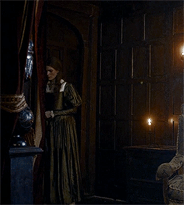 She lets him down gently, saying she cannot be with another man after Humphrey’s sacrifice; she needs to honour their marriage. He grows angry, claiming he kept her safe like no one else ever had or could; he helped her, let her in on this grand secret— he’d never considered doing such a thing for a woman. It’s her fault for coming to confession and making him feel this way. That he’d never once broken his religious oaths. His behaviour is erratic, and she attempts to get away. He pulls her back by the hair; when she’s whipped around, she delivers a claw-like scratch to his cheek, which bleeds out immediately, rendering him momentarily defenceless. She reaches for the dagger that’s been kept beneath her dress in a thigh holster ever since she became part of the plot; he regains himself too quickly and overpowers her, throwing her to the ground, giving her a nasty bump to the back of her head. She loses consciousness only for a few seconds. When she wakes, his hands are already around her throat, pressing her further and further into the ground. She dies by the hand of his obsession....